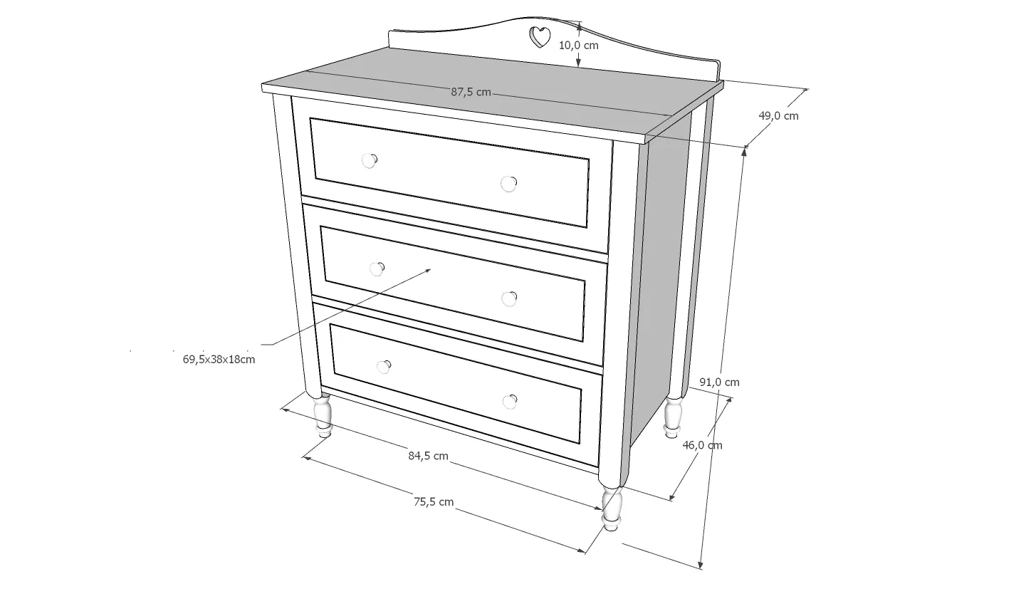 Medžiaga: komoda pagaminta iš aukštos kokybės 18mm storio laminuotos medžio drožlių plokštės