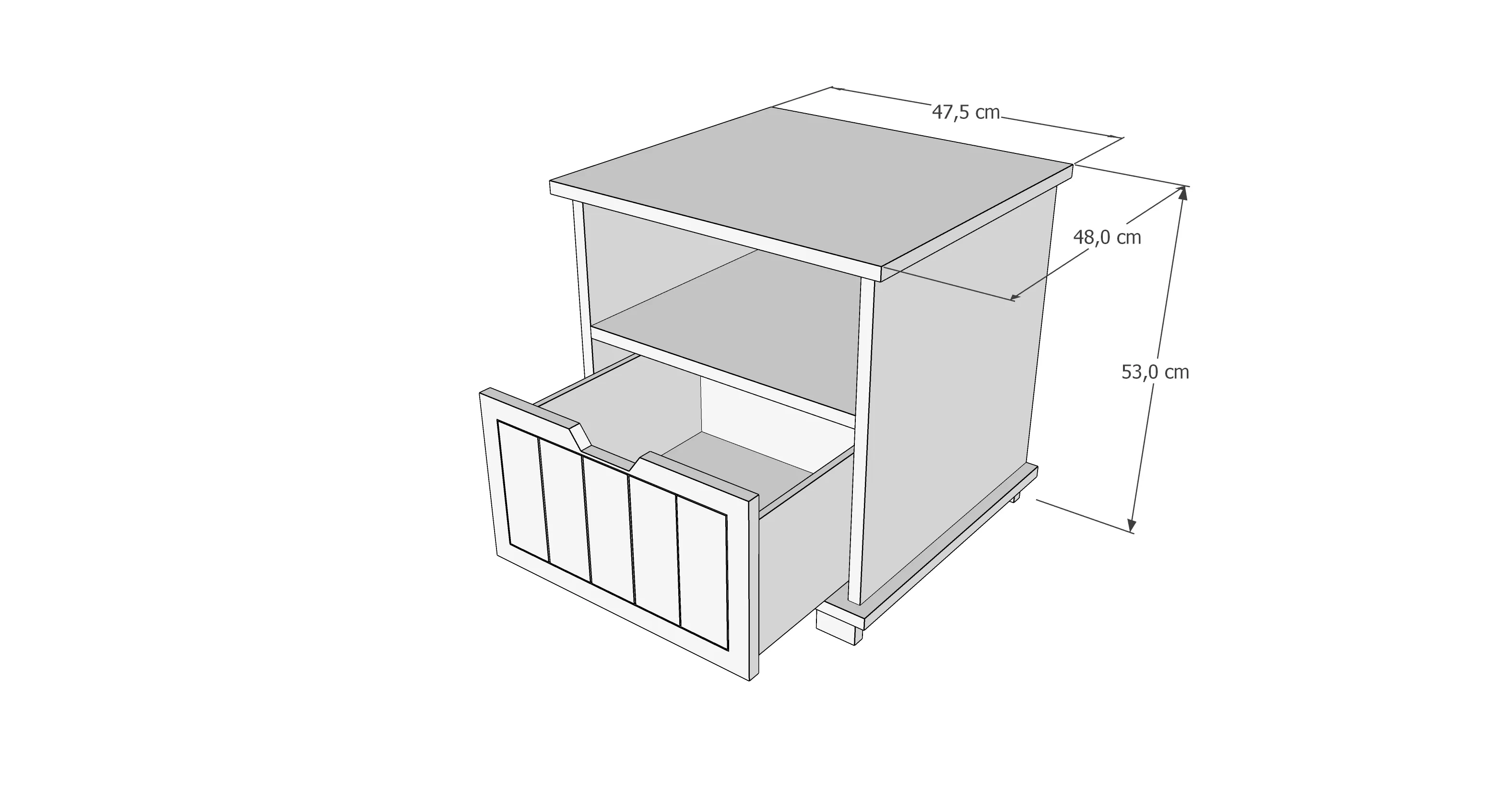 Medžiaga: spintelė pagaminta iš labai aukštos kokybės medienos drožlių plokštės. Stalčius montuojamas ant bėgelių, kurie turi stabdžius ir lėtai bei saugiai užsidaro.