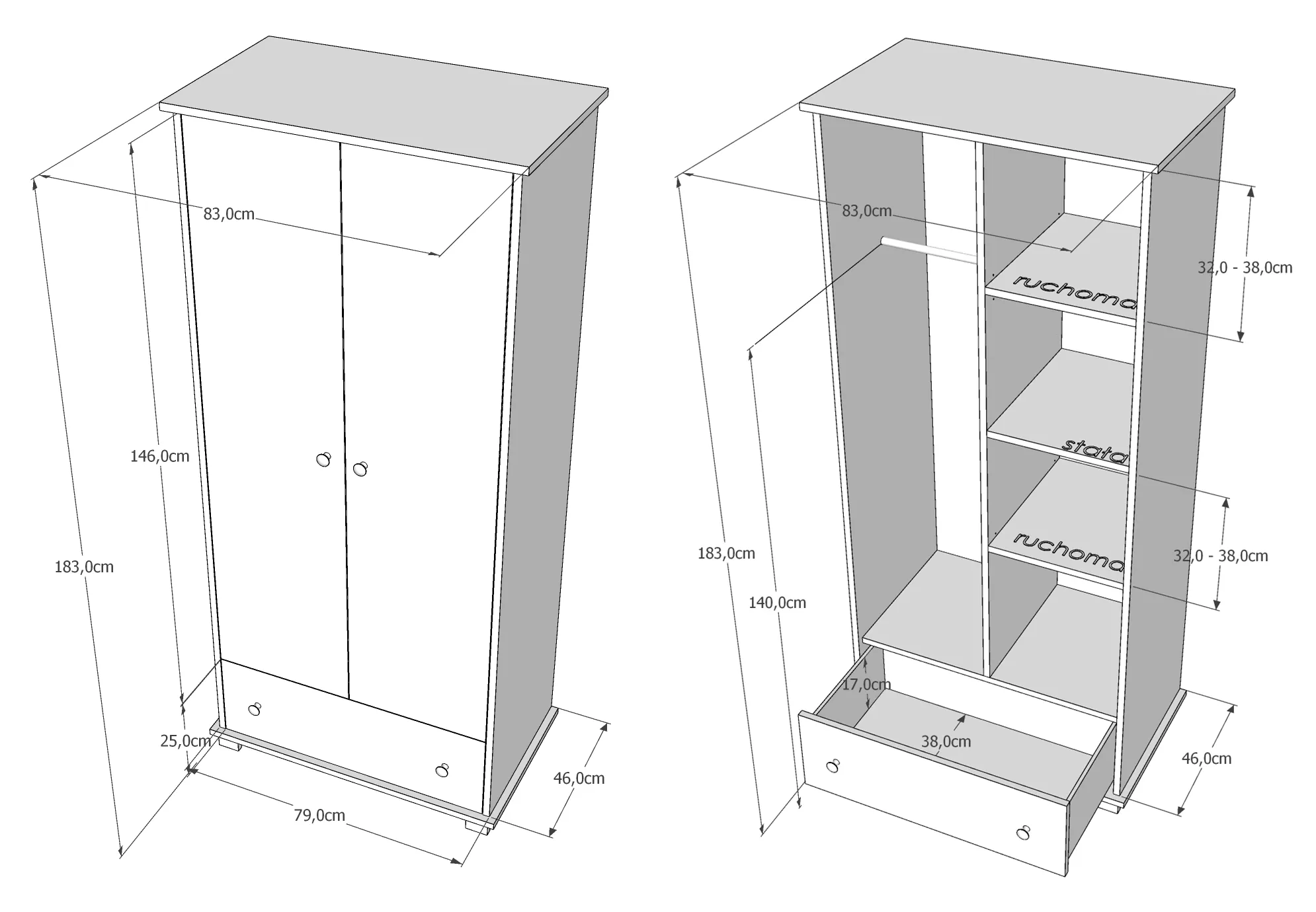 Ilgis: 83cm / Plotis: 46cm / Aukštis: 183cm