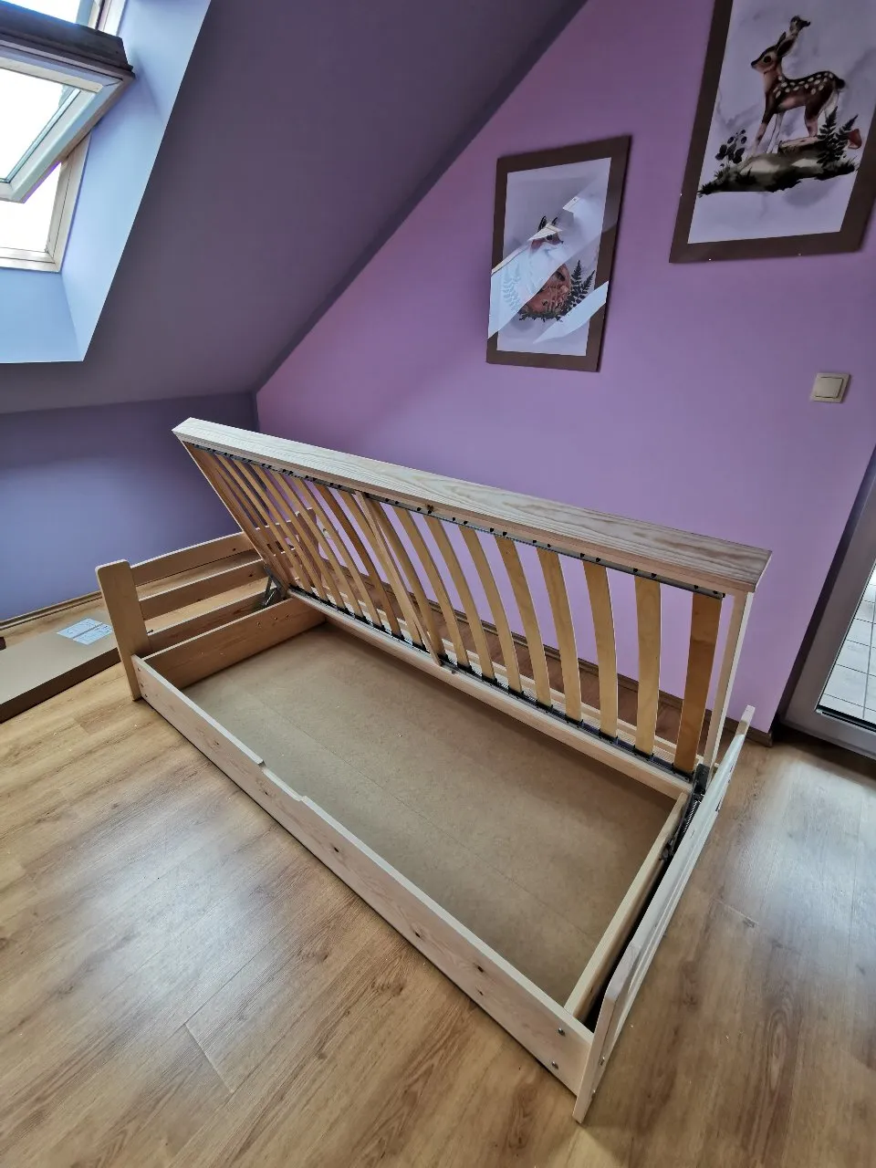 Galima komplektacija: lova + grotelės + čiužinys + pakeliama patalynės dėžė